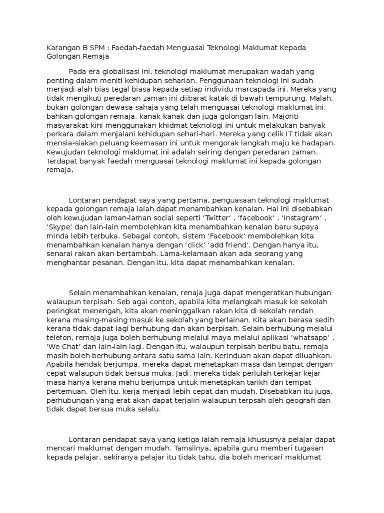 Contoh Karangan B Spm Faedah Teknologi Maklumat Kepada Remaja